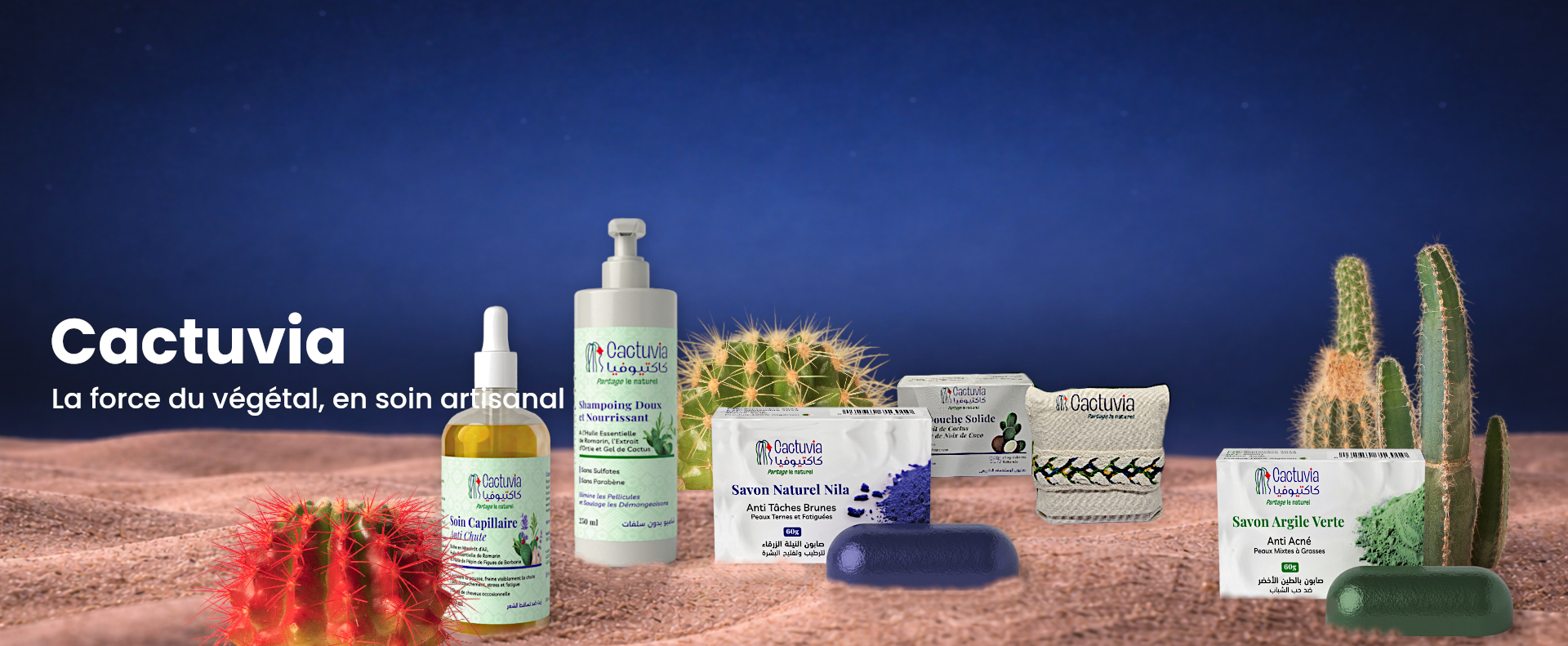 Nos produits de beauté naturels vous accompagnent chaque jour pour une peau saine et protégée. Enrichis au cactus de figue de barbarie, ils combinent pureté, efficacité et hydratation, pour un rituel de soin agréable et responsable.