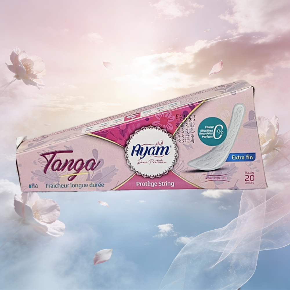 Les protège-slips Tanga AYAM ont été spécialement conçus pour offrir discrétion, confort et protection au quotidien. Leur forme adaptée aux sous-vêtements type tanga assure un maintien parfait et une sensation de fraîcheur tout au long de la journée.